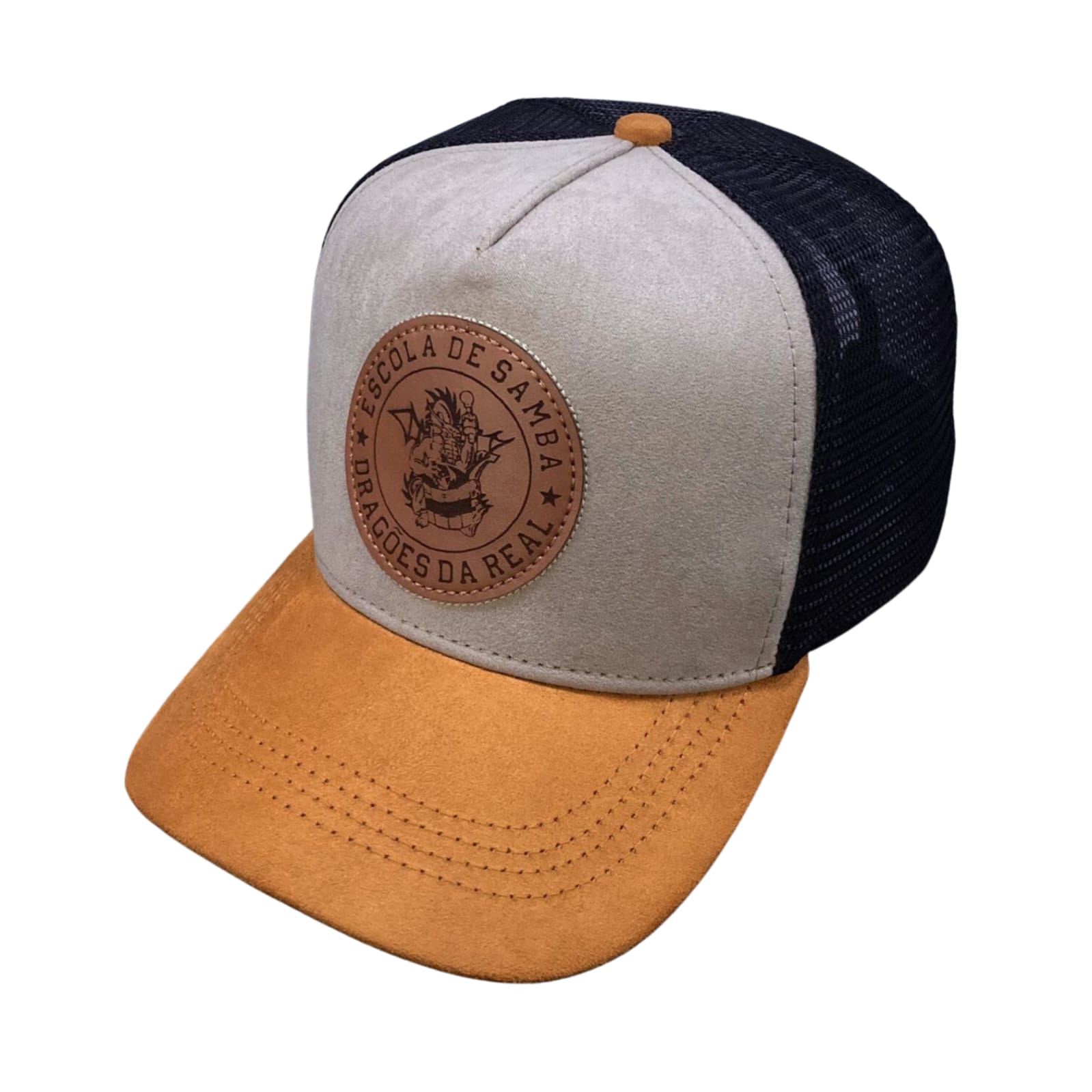 Boné com três cores e a logo da Dragões da Real